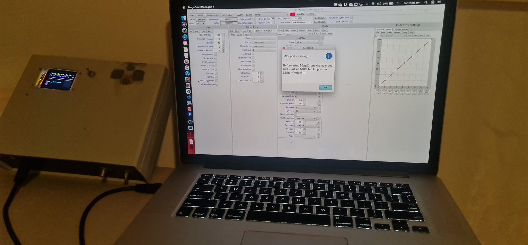 Eventually got the triggers “working” (barely) and started testing MIDI signals. But then, the MegaDrum firmware started acting up—bugs everywhere, “Syntax signal” errors, wouldn’t save my MIDI values… Conclusion: The struggle must go on.