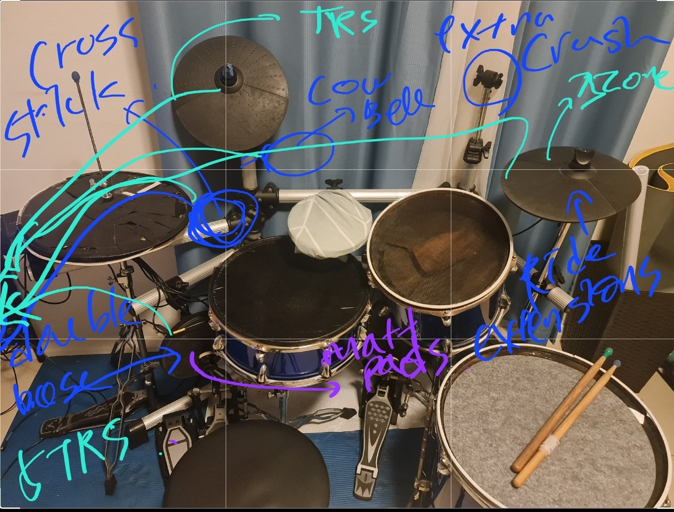 Look, I swear I don’t hit ’em that hard. But the mesh head on the snare ripped anyway. Then the cymbal triggers kept misfiring, so I had to swap out all the piezos.