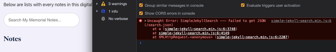 I swear, my digital garden’s search box function used to work flawlessly…now it’s suddenly having the XMLHttpRequest issue along with search.json 😩