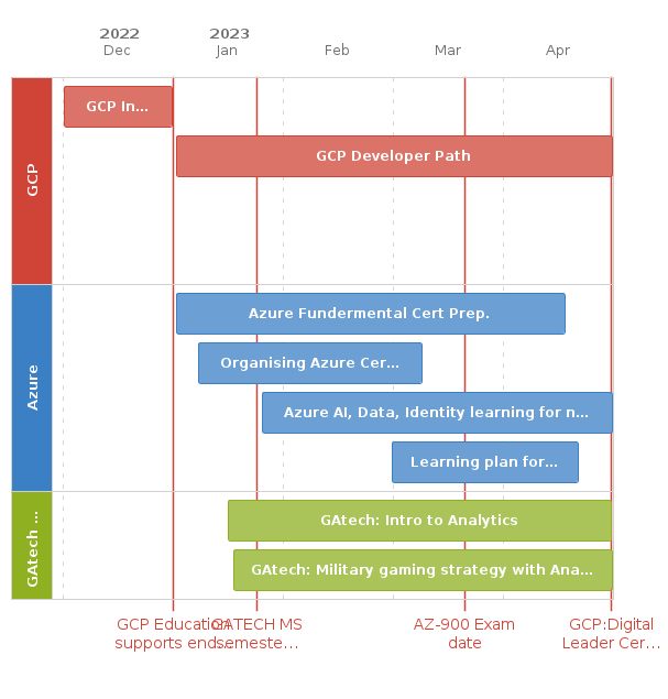 MS and Google gave me some learning support to help me take low-cost learning paths. As those supports have a deadline (Google - End of December, MS - within 90 days since I activated the support plan)