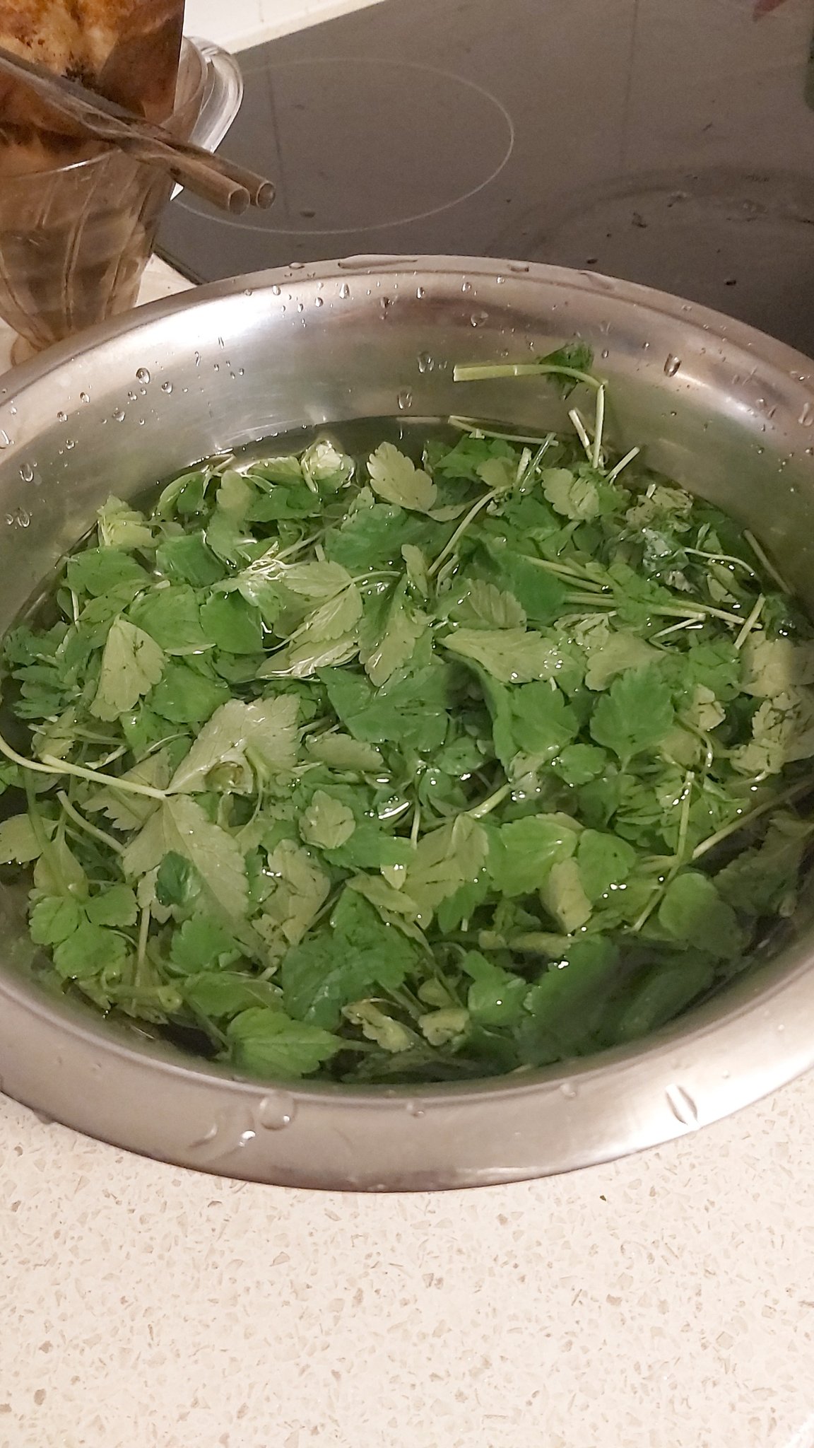 Sideways- I harvested a handful bunch of Mitsuba and Minari.