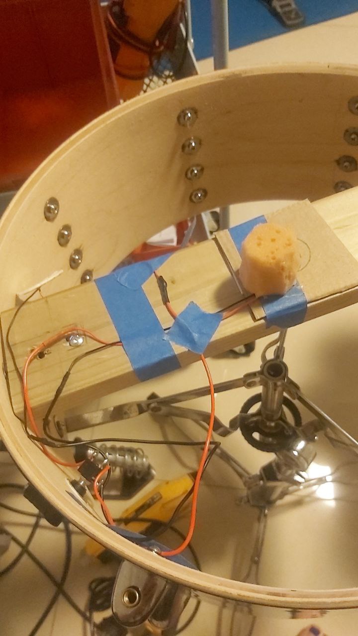 Snare Drum’s head rim started creeping off, and that was made for missing a couple of beats. I re-adjusted the mount bracket a bit so that my drumstick could hit the trigger appropriately.