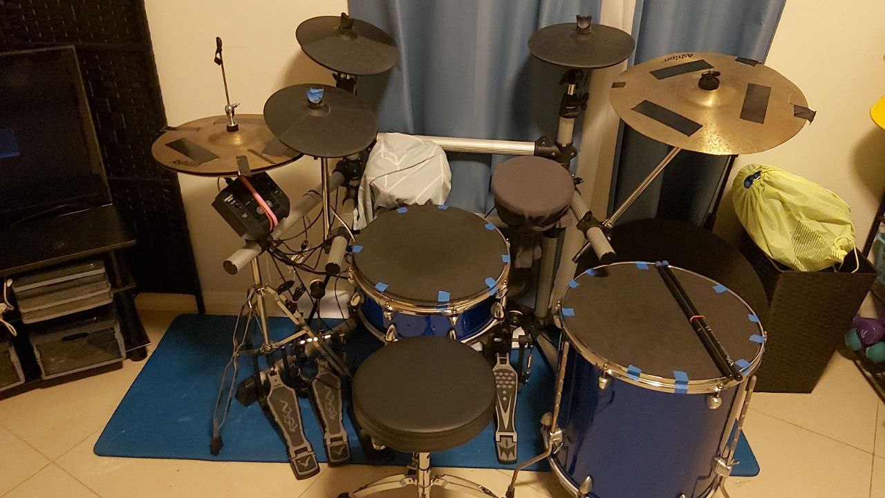 In the meantime, I was working on converting my acoustic snare drum and floor tom. After converting the legit drum kit to electric trigger pads, I have had fun quite a bit.