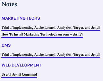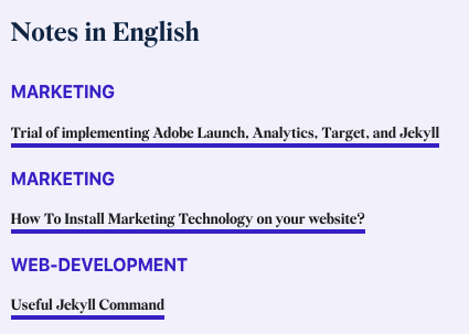 Due to the issue I found above; I struggled to solve the problems. I was toying around with permalink setups, tag for loop syntax, changing the note folder structures, etc. None of them worked. While I was frustrated about it, one slightest idea came up to my head. I put all tags inside of the ‘[]’ brackets. Since so, the tag categorisation amazingly works fine.