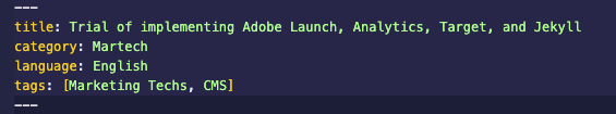 Implementing Adobe suite and google suite took longer than I thought. Injecting the library was not a matter, but the correct configuration along with Jekyll and github.io was tricky.