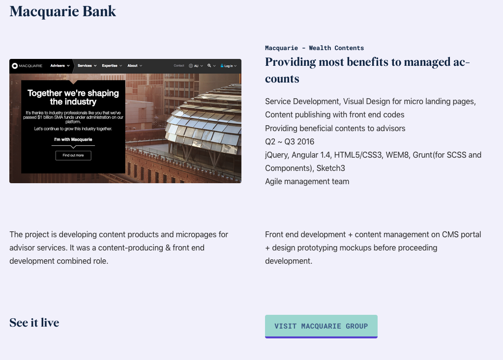 I added the portfolio showcase project “Macquarie Bank - Wealth Product.”
