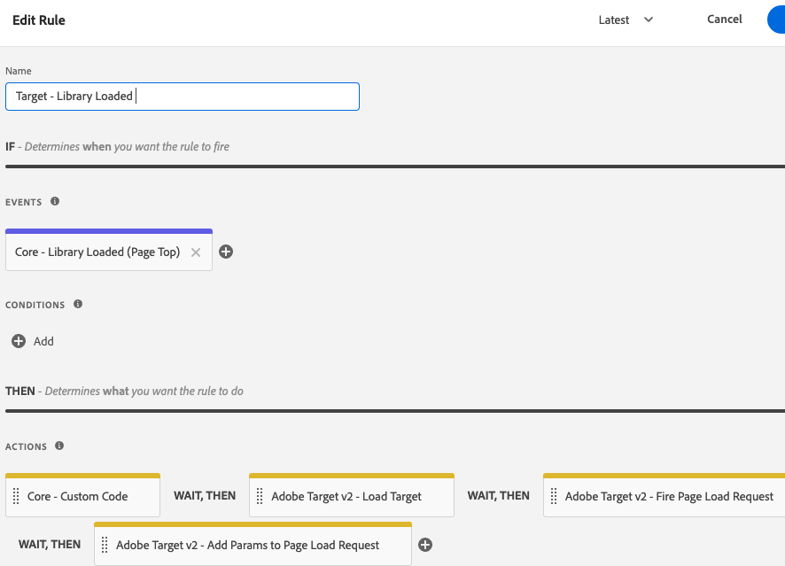 I don’t remember how often I tried to solve the target library load issue. I read through all document pages regarding tag management because I thought my rule setup was wrong.